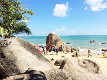 天涯海角游覽區(qū)位于海南省三亞市西南方向,位于三亞灣和紅塘灣之間的岬角上?偯娣e為16.4平方千米,其中陸域面積10.4平方千米,海域面積為6平方千米。因景區(qū)兩塊巨石分別刻有“天涯”、“海角”及郭沫若先生題寫的“天涯海角游覽區(qū)”而得名。