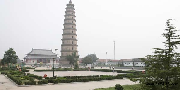 塔在縣城的中心,遠遠地便望到了。該塔原名“釋迦文舍利寶塔”,又稱開福寺舍利塔,因景縣原為景州,所以人們通常稱為景州塔。據(jù)說釋迦牟尼涅盤后,弟子將他的舍利子分成八份,其中兩份分別送給中土的洛陽白馬寺和景州的開福寺,由此可見開福寺和景州在當時中土佛教界的地位。寺院毀于遼宋、宋元戰(zhàn)爭,僅有的一座無梁殿也在“文革”期間被拆毀,而今只剩下這座古塔。