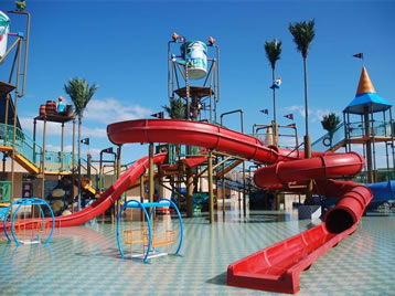 寶貝水城:小孩子的玩水樂(lè)園、歡樂(lè)的造夢(mèng)空間。典型設(shè)備包括蝴蝶滑梯、青龍滑梯、鱷魚(yú)滑梯等設(shè)備,還有蝸牛號(hào)、椰果派、水風(fēng)車(chē)、向陽(yáng)花、七彩蘑菇、彩虹門(mén)、三色花、鳥(niǎo)語(yǔ)花香、小妖精等可噴水可觀賞的童趣水景。寶貝水城色彩鮮艷,設(shè)施眾多,小孩們可以盡情嬉戲玩耍,激發(fā)兒童無(wú)窮的想象力和創(chuàng)造力。