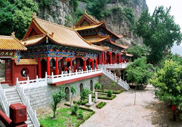 天桂山的青龍觀,原是為明朝末代崇禎皇帝修建的歸隱行宮。明朝末年,李自成起義嚴重動搖了明廷皇權(quán)。崇禎皇帝朱由儉在義軍紛起逼近北京的情況下,預(yù)感江山不穩(wěn),便密派心腹太監(jiān)林重萆出京選隱地修建行宮,以防不測。故所有的建筑既有皇宮之名,又有道教之稱,是中國唯一政教合一的古建筑群。清初一百年間,青龍觀屢有增設(shè)和修葺,擁有大小建筑十二處之多。其中真武殿、蒼巖殿和大光明殿共為青龍觀的三大建筑。在這座集皇家園林、道教宮觀和大自然秀麗景觀于一體的風(fēng)景名勝區(qū)內(nèi),青龍觀的龐大建筑群,依山就勢,隨崖而建,真可謂陡崖鑲金,絕壁嵌珠,巧奪天工。天桂山既有雄秀交融的天然風(fēng)光,又有皇家園林的高貴氣韻和道家仙山的莊嚴氣勢及神秘色彩,俗有“皇家道院”之稱,“北方桂林”之譽