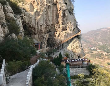 天梯山系太行山脈,海拔雖說只有500多米,但山不在高,奇特則名。遠(yuǎn)看此山平平常常貌不驚人,近前才知與眾不同確有奇特之處。說其奇,奇就奇在該山古洞群聚,洞套洞洞連洞別有洞天;說其特,特就特在該山怪石嶙峋形貌各異,壁立千仞宛若刀劈,登山臺階陡立向上,好像一架梯子高倚云天,其險要之勢,奇特之狀令人交口贊絕。