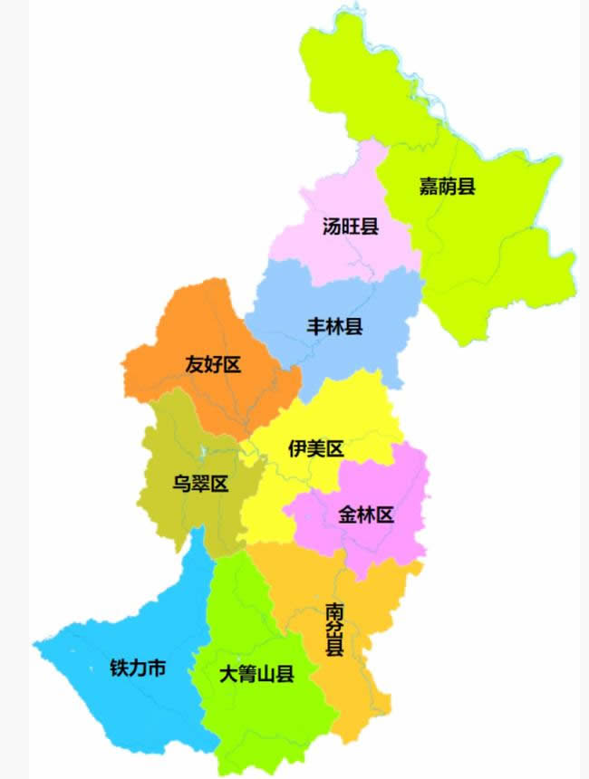 伊春市轄4個(gè)市轄區(qū)、5個(gè)縣,代管1個(gè)縣級(jí)市: