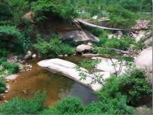 元寶潭元寶潭是畫眉谷景區(qū)的第一個景點。元寶潭是因潭中有一 個形似元寶的石頭而得名。此石是由斷裂破碎的花崗巖體經(jīng)長年水流下切侵蝕而成的。關(guān)于這元寶潭還有一個動人的傳說。傳說有盜寶者在山中盜得元寶外逃至此,被鎮(zhèn)山神指定住,寶落潭中。至今元寶仍在潭中,成為畫眉谷旅游的一道亮麗風景。