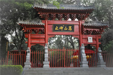 大門亦稱山門,由登封縣知縣葉封于清康熙十三年(1677年)主持重建。清乾隆四年(1739年),登封縣知縣施奕簪主持重修。1982年,文物部門維修時(shí),復(fù)原了雙獅門墩、板門、隔墻上部的木隔扇。