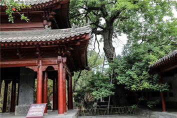二程手植槐,樹(shù)高19.5米,圍粗4米。雖然樹(shù)干嶙峋,中空外實(shí),槐冠卻叢撥陰濃,新枝簇簇,樹(shù)姿優(yōu)美,老而不衰。相傳為北宋理學(xué)名家程顥到嵩陽(yáng)書院講學(xué)時(shí)親手所栽。