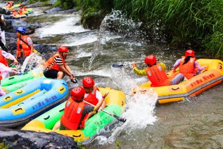 豫西大峽谷漂流----豫西大峽谷斥資近億元打造的國(guó)內(nèi)頂級(jí)漂流,集“巖洞漂流、暗河漂流、峽谷漂流、瀑布漂流、回旋漂流”五大特色于一體,漂流河全程6公里,穿越3處穿山巖洞,經(jīng)過2處回旋漂流,飛躍白龍瀑、九曲瀑、大淙瀑。從起漂碼頭到第一級(jí)渡口,約有一公里的平緩水域,水勢(shì)潺湲。其后水流順勢(shì)而下,則由不得你不瘋狂,不尖叫!漂流河道時(shí)而平緩安靜、波光粼粼如掩面嬌羞的少女;時(shí)而飛流直下,偏偏輕舟瞬時(shí)激起千層白浪,倏然之間,乖順的輕舟突然間就成了桀驁不順的烈馬,肌肉緊繃,左沖右撞。尖叫之聲隨之響徹于山谷之中,但卻動(dòng)聽如天籟之聲。