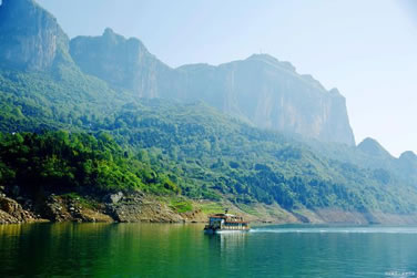 清江支流丹水,因其水淺,清澄得可見河床鋪滿的亂石,兩岸山巒起伏,郁郁蔥蔥,現(xiàn)成為游人漂流的絕佳去處。丹水最寬處有十幾米,最窄處僅四五米,大雨過后,河水水量較大,水流湍急,是漂流的好時(shí)候,但較危險(xiǎn)。2-3人乘坐一充氣皮筏從上游順流而下,在水面闊、水流緩處,可一邊蕩漿一邊仰望兩岸幽靜的景色,或低頭搜尋水底的小魚小蟹;而水面窄處,水流因亂石的阻礙變得浪花飛濺,駕著皮筏,一不小心,就會(huì)撞上大石頭,有時(shí)皮筏因水流太急而不可控制,那種緊張刺激的感受,是長(zhǎng)期生活在城市中的人們很難體會(huì)到的。與小三峽、神農(nóng)溪漂流顯著不同的是,小三峽乘機(jī)動(dòng)船,機(jī)器的噪聲,很難讓人靜心去欣賞其山其水的瑰麗,神農(nóng)溪是由纖夫拉纖,將“豌豆角”型木船拉至上游,然后由船工撐船漂流而下,游人只能仰望山的幽奇,水的清亮,卻不能親自感受駕舟乘風(fēng)破浪的驚險(xiǎn)刺激。