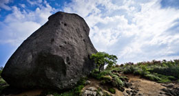 2、婦孺石:位于海拔1400米的茫茫草原之中,巍然挺拔,高約10米,上下由兩塊大小不等的石頭組成,遠觀猶似一少婦,神態(tài)慈祥,悠然自在,懷抱其子,親切可人。故名。