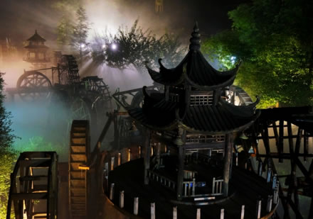 風雨長廊位于田園牧歌景觀區(qū)東頭,取臥龍之形,伸展于山谷之中,從田野一直延伸到黃龍洞進口。風雨長廊為木質吊腳樓穿斗結構,做工十分精細,榫卯巧妙連接,雖然不用一顆鐵釘?shù)珔s非常穩(wěn)定、堅固。置身長廊,不僅可以防止日曬雨淋,還可以品讀富有地域特色的湘西建筑文化。