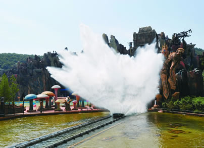 遮掩不住的綠意、隨風起舞的樹影、奇思妙想的雕塑。每處景致都在極力烘托各區(qū)域的主題特色。漫步在嬉戲谷,收獲的不僅是自然的靈感、生活的情趣,更有讓人禁不住會心微笑的細節(jié)和不經意間心靈的震撼。最美不勝收的樂園中心的“精靈湖”,湖中挺立著一座精致典雅、風格獨特的“神秘之島”,湖島相連,脈脈依依,給人以無盡想象,續(xù)寫著不朽的浪漫傳奇,夜晚。彩色噴泉與夜色相交,體現出與自然景色不一樣的美-------科技美。