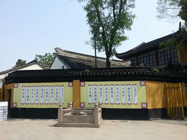 藏經(jīng)樓系原來(lái)收藏陳放經(jīng)書(shū)處,面闊3間,寬9.8米;進(jìn)深9.2米。藏經(jīng)樓樓屋頂有《西游記》中孫悟空、唐僧、豬八戒、沙悟凈的雕塑像。一樓內(nèi)墻壁上嵌有《金剛般若波羅蜜經(jīng)》的經(jīng)文(系禪宗)。還嵌有董其昌(1555一1636年,上海松江人,明代杰出的書(shū)畫(huà)家)等人的書(shū)法碑刻。鐘樓為二層,八角。樓下石碑為重修寒山寺時(shí)所立,正面碑文為程德全所撰,碑的背面刻有重修寒山寺時(shí)募捐者的名字和金錢(qián)額。傳說(shuō)張繼詩(shī)中的鐘就是懸于原來(lái)這里的鐘樓樓上。鐘樓建筑和這里的鐘都不是唐代的了,這口鐘是清代光緒三十二年(1906年)重鑄的,距今有100多年的歷史。月落烏啼霜滿(mǎn)天,江楓漁火對(duì)愁眠。姑蘇城外寒山寺,夜半鐘聲到客船!边@是唐代詩(shī)人張繼寫(xiě)的。傳說(shuō)詩(shī)人張繼去唐時(shí)首都長(zhǎng)安(今西安)赴考后,落第返回時(shí),途經(jīng)寒山寺,夜泊于楓橋附近的客船中,夜里難以成眠,聽(tīng)到寒山寺傳來(lái)的鐘聲,有感而作!稐鳂蛞共础吩(shī)在日本幾乎家喻戶(hù)曉。日本的小學(xué)生把這首詩(shī)作為課文來(lái)講授和背誦。