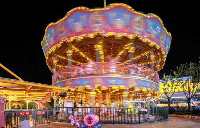 旋轉(zhuǎn)木馬:騎著木馬,伴隨著音樂奔騰旋轉(zhuǎn)。讓理性暫時(shí)逃離大腦皮層,腦海里的白馬躍然而上,腳踏祥云和春風(fēng)。