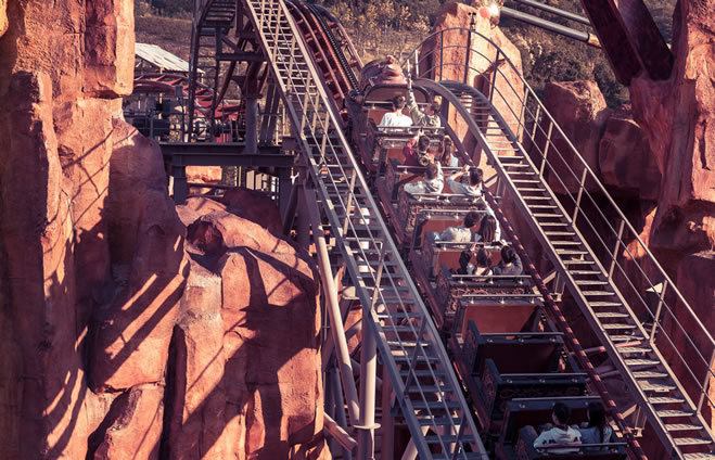 礦井逃生:機(jī)械文明之下的“生死逃亡”,這里是“蒸汽朋克風(fēng)”發(fā)燒友們的打卡圣地,機(jī)械式過山車穿越狹窄礦洞,加速下落、極速攀升,讓你體驗(yàn)脈搏跳動的奇妙。