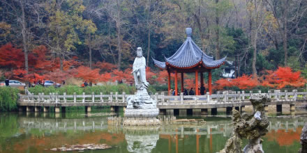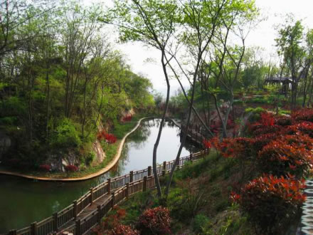 紅葉谷位于御花園和鳳翔峰西南山腰的交界處,由于這里長年無人涉及,加上山水的沖刷,于是巖石裸露處盡顯崖溶奇石景觀,其余則為茂密的叢林和濕地,特有的氣候環(huán)境,使這里奇石嶙峋、古楓矗立、古藤纏繞。該景點的建設充分考慮倒地貌、水體、植物、設施等的和諧搭配,注重棲霞山的生態(tài)功能的修復,不斷美化、優(yōu)化、彩化環(huán)境,并引水造池,改善該區(qū)域的生態(tài)環(huán)境。紅葉谷占地約5萬平方米,景區(qū)自然風貌優(yōu)美,以奇石、紅葉為特點,是集山、石、水、林、亭為一體新的紅葉觀賞區(qū)。