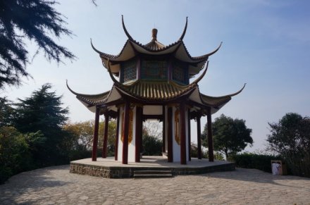 碧云亭位于虎山之巔,又名“望江亭”,平頂崗巒貌似半島,向北伸出,三面均是懸?guī)r,僅一石與山道相連,構成別具一格,是以險取勝的景點。其東側深谷陡壁,巖石裸露,峻峭無比,西側,由松濤林海鋪成的起伏崗巒,向北眺望,長江盡收眼底。