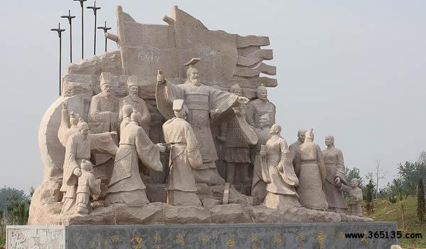 沛縣城雕:建于1996年,高22米,位于城南鄭沛路入城處。四根巨柱擎起晶體圓球,金色巨龍環(huán)繞球上,象征著“千古龍飛地,一代帝王鄉(xiāng)”的沛縣正以騰飛的姿態(tài)奔向二十一世紀(jì)。