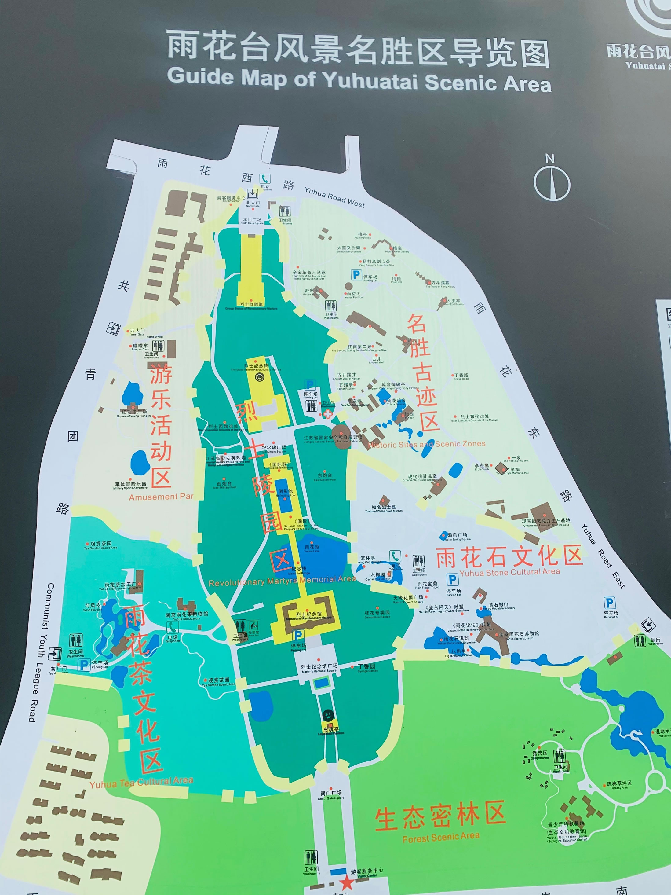 雨花臺風景名勝區(qū)由名勝古跡區(qū)、烈士陵園區(qū)、雨花石文化區(qū)、雨花茶文化區(qū)、游樂活動區(qū)和生態(tài)密林區(qū)六大功能區(qū)組成。復建了雨花閣、二忠祠、木末亭、乾隆御碑亭、方孝孺墓、辛亥革命人馬冢、甘露井、曦園、怡苑、梅崗等20余處名勝古跡和樓臺亭閣館。