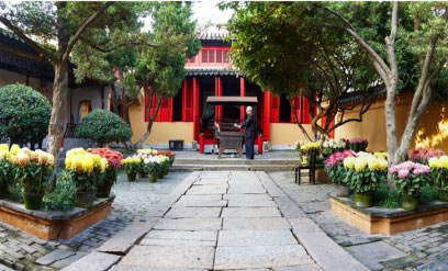 南湖園全福寺分為三個(gè)部門,東西兩個(gè)為花園,分別是為了紀(jì)念唐朝著名詩人劉禹錫、陸龜蒙和西晉文學(xué)家張季鷹而建,中間即是全福講寺。