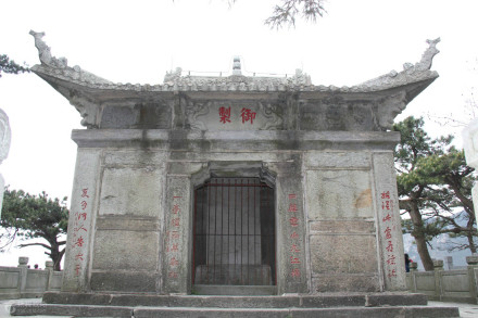 御碑亭位于廬山仙人洞一側(cè)的白鹿升仙臺上,是明朝皇帝朱元璋所建造的。明朝洪武二十六年九月(1393年)朱元璋為了紀念周顛仙等人就在這臺上建起了御碑亭。亭中至今還保存著朱元璋的御碑。碑上刻著這位朱皇帝親自撰寫的《周顛仙人傳》和《四仙詩》。這塊御碑高約4米、寬1.3米、厚0.23米。
