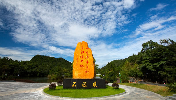 護源石是2017年紀念香港回歸20周年時所立,石碑上“一定要保護好東江源頭水”為周恩來總理的親筆題詞。1963年,香港遭遇了60多年來最嚴重的一次干旱,350萬人的生活因缺水陷入困境。當年12月,周恩來總理親自批示,撥?钣昧11個月的時間在深圳建成了東深供水工程,把東江的水引到香港,從此結(jié)束了香港長期缺水的歷史。護源石形狀像一只手掌,寓意用手護源,石頭高5.23米,與東江流域長度523公里相對應,寬3米,代表贛、粵、港三地;護源石底座長4.65米,與三百山到香港的距離465公里相對應;花壇采用圓形,寓意“圓圓滿滿”。