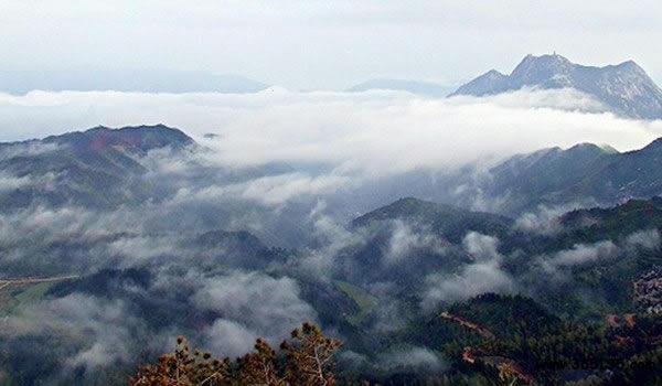 五府山:位于上饒縣南部,武夷山北麓。地處亞熱帶,氣候溫暖,雨量充沛,年平均氣溫在14—18℃之間,年平均降雨量在1880毫米,相對(duì)濕度為84%,一年無霜期為235天。五府山上的五府崗為上饒縣的最高峰。因其在月明風(fēng)清之夜,臨崗遠(yuǎn)眺,舊制的江西“廣信府”、“饒州府”、浙江“衢州府”、福建“建陽(yáng)府”、“南平府”等“五府萬家燈火盡收眼底”,五府山因此而得名。