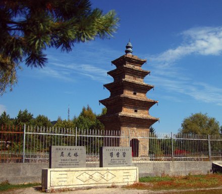 靈光塔,位于吉林省白山市長白朝鮮族自治縣長白鎮(zhèn)西北。靈光塔是一座典型的磚砌密檐樓閣式方形古塔,是渤海國仿唐建筑,始建于唐渤海年間(698年~926年),已有1300多年的歷史。靈光塔的原名早已失傳,今名“靈光塔”由清末長白府第一任知府張風(fēng)臺命名。