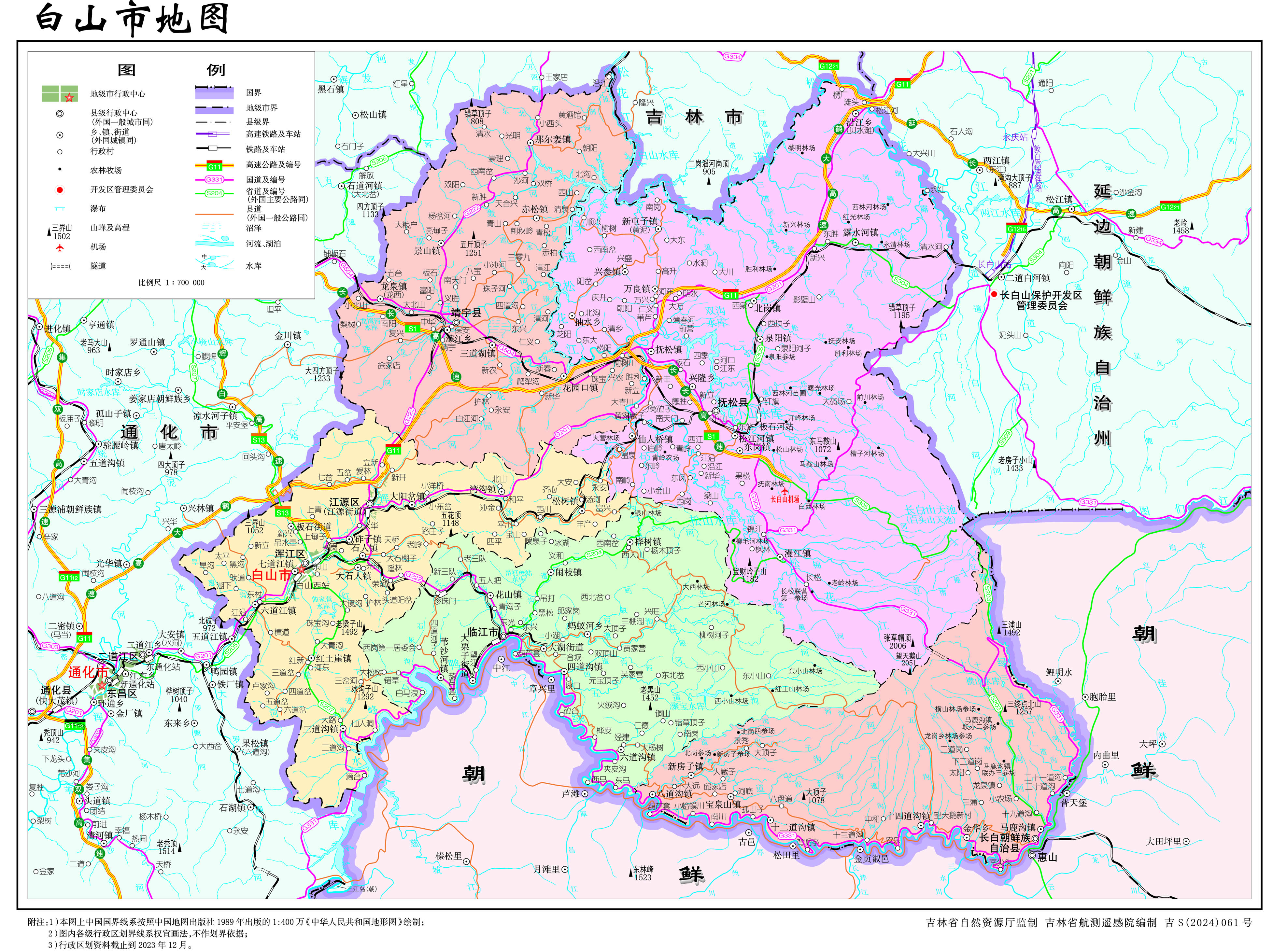 白山市轄2個市轄區(qū)、2個縣、1個自治縣,代管1個縣級市: