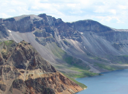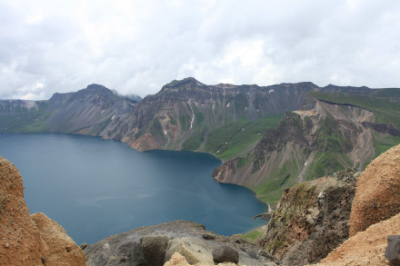 天池周圍火山口壁陡峭,并形成十幾座環(huán)狀山山峰,海拔均在2500米以上,其中將軍峰最高,海拔2749米,位于朝鮮一側(cè)。白云峰海拔2691米,在天池西側(cè),為中國東北的第一高峰。天池東北有天豁、鐵壁、華蓋、紫霞諸峰,天池西南有梯云、臥虎、冠冕(玉雪)諸峰,天池西北有龍門、觀日、錦屏、芝盤、玉柱(青石)諸峰。因駐有氣象站而得名的天文峰(2670米),介于鐵壁、華蓋兩峰之間,山峰不顯,有公路直抵山顛,可俯瞰天池。