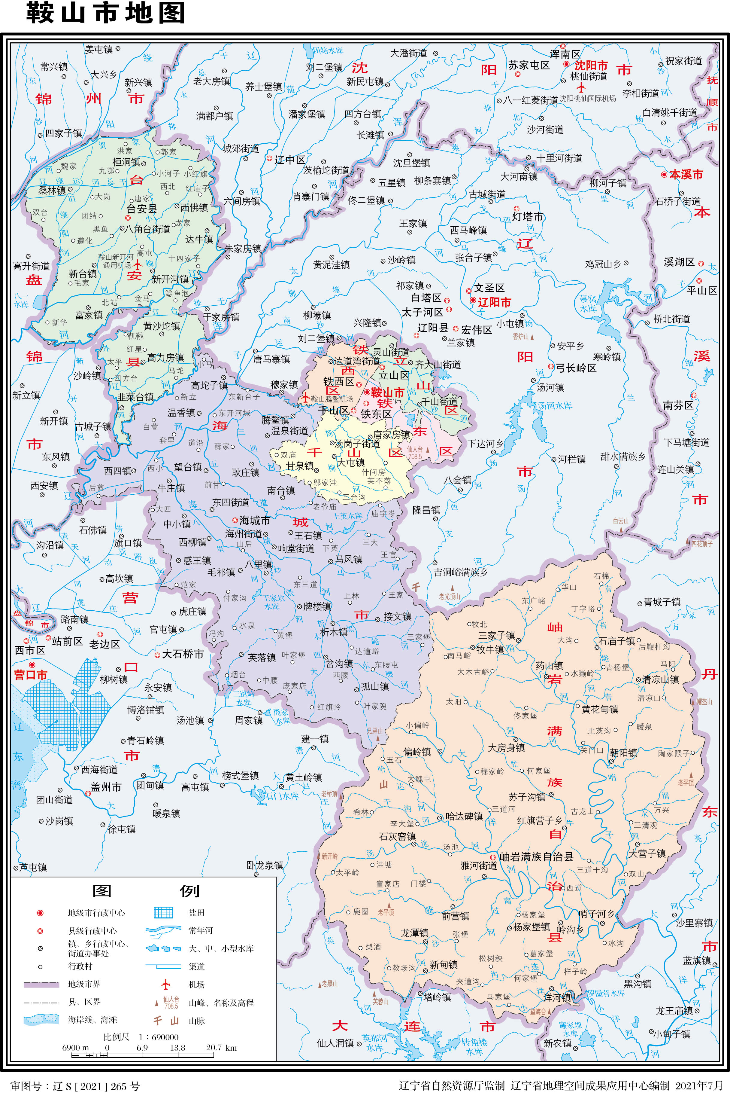 鞍山市轄4個區(qū)、1個縣、1個自治縣,代管1個縣級市: