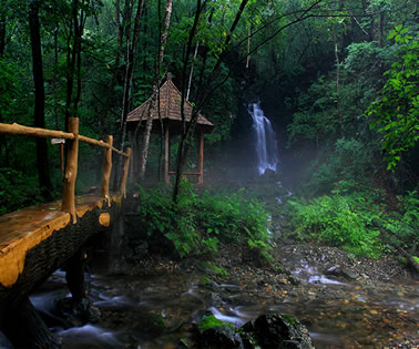 鳴翠谷聽起來就是一個很雅致的名字,以“翠”字著稱。“鳴”又突出動感。走在幽深的林間小路上,水聲鳥聲林濤聲聲聲入耳,飛動與靜謐結(jié)合,剛烈與溫柔相濟,柔與剛,動與靜自成一體,又融為一體。它是以原始的生態(tài)環(huán)境,一塵不染的清新空氣和來自大自然的天簌之音組成了神妙、奇幻、幽美的自然風光。