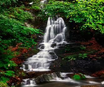 到秋季,葉子就會變成紅色,鮮艷欲滴,看上去就像一個天然盆景。圣泉,大家請看,涓涓細流順石而下,無論多旱的天它都細水長流,當?shù)仄摺耸畾q的老人都知道在以前的大旱年代,圣泉曾經(jīng)救過很多人的命,因此當?shù)乩习傩瞻阉Q作救命水和觀音水。如果用瓶子接一下,就會看到瓶壁上結(jié)了一層霜,像剛從冰箱里拿出來的一樣,人們都說;農(nóng)夫山泉有點甜,其實關(guān)門山山泉更香甜。看過了圣泉的纏綿,再來看一看晶簾瀑布的壯觀。晶簾瀑布就像一個水晶的簾子倒掛,關(guān)于它還有一個動人的傳說。瀑布兩側(cè)的山如刀削一樣,原來這兩座山是連在一起的,這邊也沒有瀑布的水。相傳,由于這兩座山相連在一起,山這面的百姓不得不到山那面的潭中取水,潭中有一條蛟龍,看到百姓擔水非常辛苦,于是有一天他竭盡全力指向大山,撞開了一條通道,河水就流了出來,人們的飲用水得到了解決,但是蛟龍卻因精疲力竭而死,人們?yōu)榱思o念這條蛟龍,便把大墻縫改為龍門峽,把這條瀑布稱為龍門峽的晶簾瀑布,下面的潭水稱為龍涎潭。