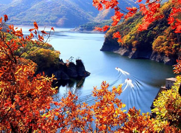 月臺子景區(qū)是主要的楓葉觀賞區(qū),每年本溪都開楓葉節(jié)。楓葉節(jié)是本溪走向全國、走向世界的橋梁,是本溪旅游事業(yè)蒸蒸日上的窗口。而關(guān)門山紅葉更是倍受贊譽,每逢秋季,萬山紅遍層林盡染,紅紅火火的楓葉也會讓您的思緒隨之蕩漾,讓您不由得想起這樣一首詩:蕭蕭淺絳霞初碎,槭槭深紅雨復燃,染得千秋林一色,還家只當是春天。伴隨著詩的優(yōu)美,我們到了月亮灣。2000年7月,我國著名的歌唱家彭麗媛曾經(jīng)到此拍攝音樂電視《世紀春雨》,這首歌曾在MTV大賽中榮獲金獎,大家隨著看到的就是森林浴場,您可以漫步林中,在石桌上小憩,在秋千上放歌,尋找兒時的樂趣。