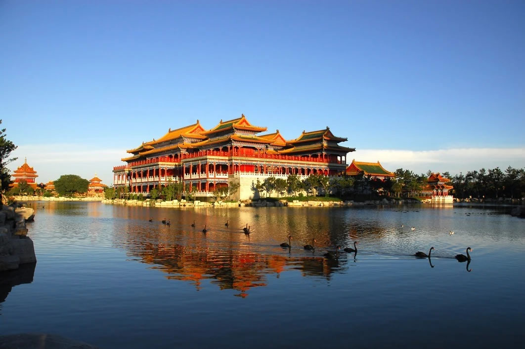 • 蓬萊仙島:以蓬萊、方丈、瀛洲三座仙島為藍(lán)本,通過古典建筑和園林藝術(shù)展現(xiàn)仙境風(fēng)貌。