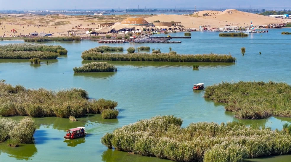 - 自然與人文特色:國(guó)家AAAAA級(jí)旅游景區(qū),以沙水相依的獨(dú)特景觀和豐富的生態(tài)資源著稱(chēng)。沙湖旅游景區(qū)是一處融合了江南水鄉(xiāng)之靈秀與塞北大漠之雄渾的“絲路驛站”上的旅游明珠,擁有萬(wàn)畝水域、五千畝沙丘、兩千畝蘆葦、千畝荷池,盛產(chǎn)魚(yú)類(lèi)、鳥(niǎo)類(lèi),棲息著十多種珍稀鳥(niǎo)類(lèi)。