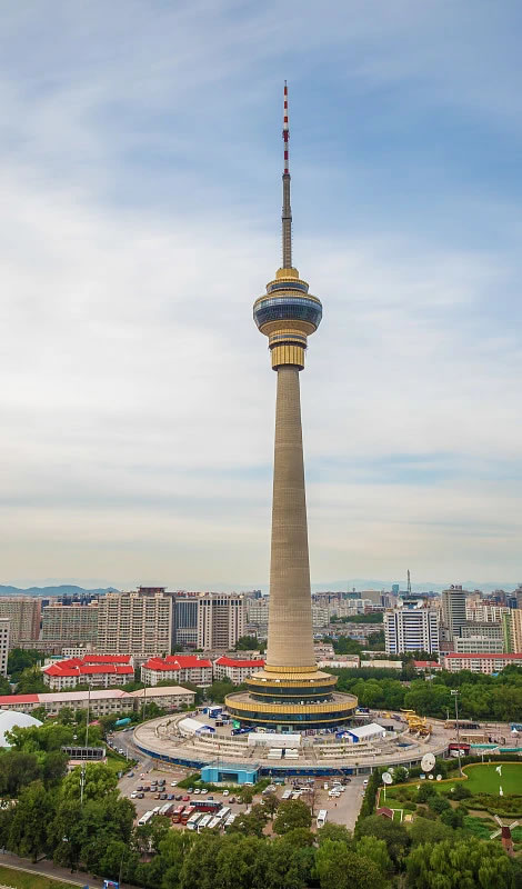 中央電視塔,位于中國北京市海淀區(qū),占地面積15.4公頃,塔高405米,始建于1987年1月,于1994年10月對(duì)外開放,是集廣播電視發(fā)射和旅游觀光、餐飲、娛樂為一體的綜合性建筑。中央電視塔由棧橋廣場(chǎng)、退臺(tái)環(huán)廊、塔基、塔座、塔身、塔樓和桅桿組成。塔的造型別致,祈年殿式的重檐形式塔座;從地面升高到223米處,筒徑半徑向外挑出10米,形成一宮燈形的塔樓。采取混凝土整體澆注法,能達(dá)到抵抗九級(jí)地震的建筑要求。