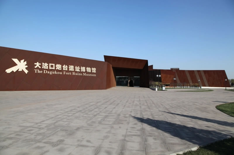 大沽口炮臺(tái)遺址博物館位于天津市濱海新區(qū)塘沽東南海河入?趦砂叮钦宫F(xiàn)中國(guó)近代史上帝國(guó)主義入侵,民族不畏列強(qiáng)、抵御外犯的民族教育和青少年教育基地。博物館總占地面積約93.8公頃,建筑面積21000平方米。大沽口炮臺(tái)始建于1522年—1566年(明嘉靖年間),重建于清鴉片戰(zhàn)爭(zhēng)期間。后存遺跡占地約16.08公頃。主要遺存內(nèi)容為南岸的“威”字炮臺(tái)、“鎮(zhèn)”字炮臺(tái)、“海”字炮臺(tái)、長(zhǎng)炮臺(tái)4座炮臺(tái),南岸營(yíng)盤東側(cè)、南側(cè)圍墻局部,分布于大沽海口兩岸。其地理位置具有鮮明的?谝卣鳌4蠊量谂谂_(tái)具有較高的文物價(jià)值和社會(huì)價(jià)值,它是我國(guó)明清北方海防重要的軍事防御設(shè)施之一,在中國(guó)近代史上占有舉足輕重的地位。大沽口炮臺(tái)是中華民族抗擊侵略、不畏強(qiáng)暴的歷史見(jiàn)證,也是濱海新區(qū)歷史文化中不可或缺的組成部分。占地3585平方米的博物館主要由展廳、臨時(shí)展廳、放映廳、庫(kù)房及其他附屬用房等組成。