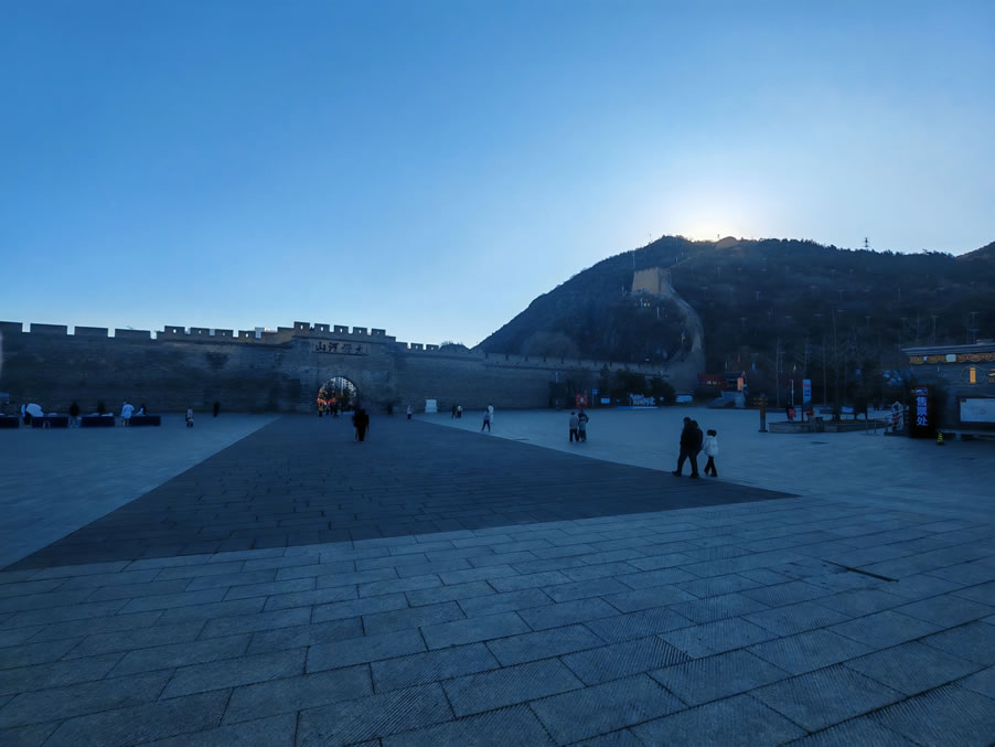 - 西境門廣場(chǎng)觀景臺(tái)廣角鏡頭框住長(zhǎng)城。