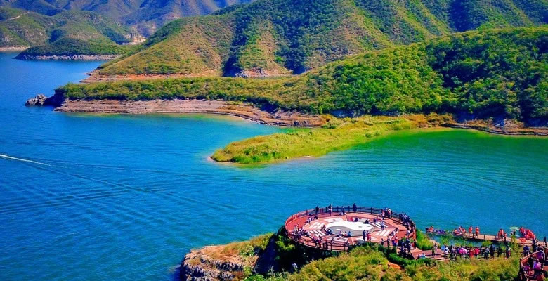 易水湖,原名安格莊水庫,位于河北省保定市易縣縣城西南25千米處,距北京150千米,距雄安新區(qū)80千米,易水湖南側與狼牙山相連,北側是紫荊關,西側是五峰寨,東側是九龍山,被稱為“北方小桂林”。易水湖是20世紀50年代利用四周高聳的山勢而修建的一座人工湖。易水湖水域面積約27平方千米,容量為3.9億立方米,最深處達48.5米。易水湖屬海河流域,大清河水系。易水湖依托山水自然資源和易文化,開發(fā)為度假區(qū),已建有易水文化休閑度假小鎮(zhèn)、養(yǎng)生島康養(yǎng)小鎮(zhèn)、老子峰3100米臨水棧道、高端度假湖景酒店、易水山谷、水上運動等業(yè)態(tài)項目。