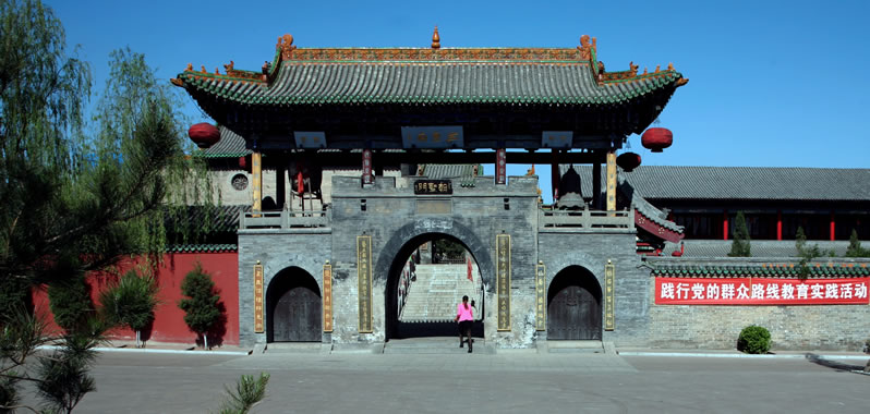 孝義市三皇廟,亦稱(chēng)圣祖廟,位于孝義市城西賈家莊村中。現(xiàn)存建筑最早為元代遺構(gòu)。元、明、清和民國(guó)年間曾不同程度進(jìn)行擴(kuò)建和修葺。該廟南北寬59米,東西長(zhǎng)84米,兩進(jìn)院布局。遒勁有力的“三皇廟”鑲嵌在山門(mén)的門(mén)額上。中軸線建有樂(lè)樓、三皇殿。頭院空闊,北角設(shè)磚券山門(mén),二進(jìn)院北角設(shè)掖門(mén)為一、二進(jìn)院出入通道。兩進(jìn)院落自然地平落差較大,故掖門(mén)前設(shè)踏步緩解。三皇殿坐西向東,面闊三間,進(jìn)深四架椽,梁架為三椽,前壓搭牽用三柱,單檐硬山頂前廊式。三皇殿內(nèi)仍保存元代結(jié)構(gòu)。三皇殿門(mén)上方掛有匾額,書(shū)寫(xiě)“三皇廟”為明萬(wàn)歷十年十月四川按察使梁明翰贈(zèng)。殿內(nèi)正面供奉太昊伏羲、神農(nóng)炎帝、軒轅黃帝,兩側(cè)配祀古代十大名醫(yī),山墻繪有“行醫(yī)圖”壁畫(huà),壁畫(huà)色彩明艷,線條清晰。大殿對(duì)面樂(lè)樓坐東向西,面闊三間,進(jìn)深五架椽,單檐卷棚頂。前后臺(tái)隔架和頂棚全為彩畫(huà)木式組成,臺(tái)口四周有木、磚、石雕刻清代遺構(gòu)。臺(tái)口上方高懸民國(guó)八年所刻匾額一塊,上書(shū)“海市蜃樓”,由晚清書(shū)法名家秦龍光所書(shū)。樂(lè)樓藻井彩繪梁山好漢一百零八將,神彩各異,栩栩如生。前后臺(tái)間,鑲嵌大塊玻璃為整座戲臺(tái)增光添彩,時(shí)有“玻璃戲臺(tái)”的美譽(yù),曾形成邑內(nèi)外“為看戲臺(tái)而看戲”的時(shí)尚。