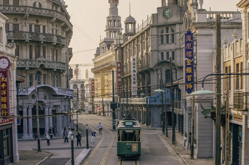 - 南京路:重現(xiàn)十里洋場(chǎng)的繁華景象,有軌電車(chē)穿梭其間,街邊復(fù)古店鋪林立,仿佛穿越回30年代的老上海。