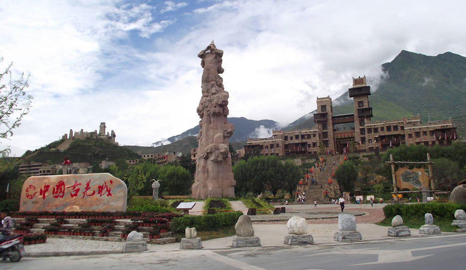 中國古羌城位于四川省阿壩藏族羌族自治州茂縣鳳儀鎮(zhèn)。地處岷江西岸金龜包、銀龜包之間,坐西朝東,背靠水西,腳抵岷江,面向九鼎圣山,頭枕藍天白云,莊嚴雄偉,氣勢恢宏。中國古羌城占地3000余畝,規(guī)劃面積215萬平方米,建筑面積為25萬平方米,建筑基礎(chǔ)面積14萬平方米。由12個組團組成。中國古羌城保持羌族原有的建筑風(fēng)貌、民風(fēng)民俗、祭祀禮儀,充分體現(xiàn)羌文化的原生態(tài)環(huán)境和羌民族的生息特點,是中國乃至世界的羌族文化活態(tài)展示、展演區(qū)及文化休閑、體驗旅游目的地。中國古羌城在2008年汶川地震中損毀嚴重,為恢復(fù)古城原貌,保留少數(shù)民族傳統(tǒng)文化、古羌族文化,國家投入大量資金進行了重建,F(xiàn)古羌城為重建后樣式。