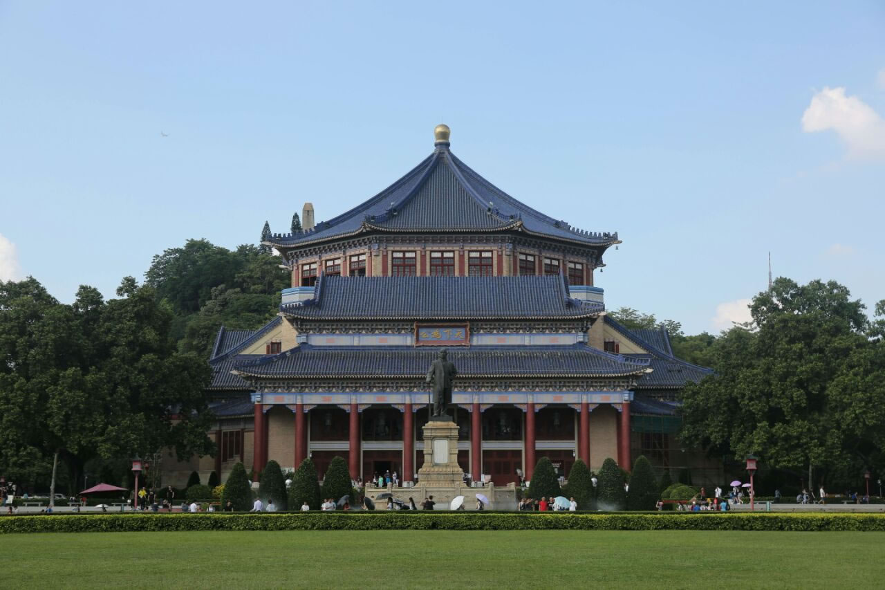廣州中山紀(jì)念堂,位于廣東省廣州市越秀區(qū)東風(fēng)中路299號(hào),是廣州人民和海外華僑為紀(jì)念孫中山先生集資興建的。民國(guó)十八年(1929年)動(dòng)工,民國(guó)二十年(1931年)竣工。中山紀(jì)念堂坐落于孫中山先生當(dāng)年的總統(tǒng)府舊址上,總占地面積為6.3公頃。廣州中山紀(jì)念堂是廣州最具標(biāo)志性的建筑物之一,是中國(guó)傳統(tǒng)建筑風(fēng)格與西方建筑結(jié)構(gòu)完美結(jié)合的典范。主體建筑占地1.2萬(wàn)平方米,高52米,是一座八角形古宮殿式建筑。它采用鋼桁架和鋼筋混凝土結(jié)構(gòu),由前后左右四個(gè)宮殿式重檐歇山抱廈建筑組成。堂頂鑲蓋寶藍(lán)色的琉璃瓦,瓦面分高低四層,層層飛檐出卷。大堂內(nèi)跨度達(dá)71米的建筑空間內(nèi)不設(shè)一柱,氣勢(shì)恢宏,富麗堂皇。