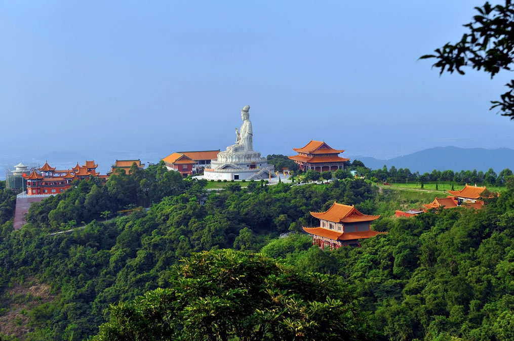 廣東觀音山國(guó)家森林公園,位于廣東省東莞市樟木頭鎮(zhèn)筆架山路190號(hào)觀音山,地處珠江三角洲東南部,東莞市東部,樟木頭鎮(zhèn)中心邊緣,距鎮(zhèn)中心1.5千米,距離東莞市區(qū)大約40千米,總面積657.18公頃。廣東觀音山國(guó)家森林公園最高點(diǎn)為耀佛嶺,海拔566米,觀音山海拔488米。屬丘陵山地地貌。所在地區(qū)樟木頭鎮(zhèn)屬南亞熱帶海洋性季風(fēng)氣候區(qū)。森林覆蓋率達(dá)92%以上,常見(jiàn)植物種類有73科199種。其中屬國(guó)家保護(hù)的動(dòng)植物22種,瀕危植物包括粘木、白桂木、蘇鐵蕨、土蠶霜、金茶花、野茶樹(shù)和野生龍眼等。有獸類、飛鳥(niǎo)類、甲殼類、昆蟲(chóng)類等300多種動(dòng)物。廣東觀音山國(guó)家森林公園內(nèi)建成了以正門樓、觀音廣場(chǎng)、觀世音菩薩法像、仙宮嶺、普渡溪、感恩湖、回音壁、怡心亭、慈云閣、先人石壘、古樹(shù)博物館、國(guó)際會(huì)展中心、仙泉游泳館等20余處景點(diǎn);內(nèi)設(shè)6.8千米的吉祥路(佛光路),既可觀景也可休閑健身;還有飛天威亞、龍鳳天梯、冰雪樂(lè)園、山地越野車等娛樂(lè)項(xiàng)目,是親子家庭放松休閑、寓教于樂(lè)的自然課堂。