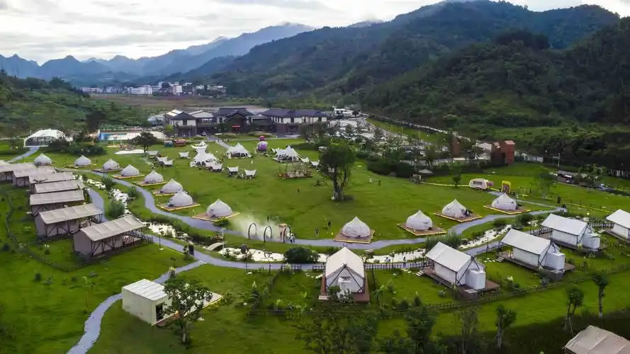 4. 露營基地:提供森林樹屋、帳篷露營、篝火晚會、農業(yè)采摘等體驗,可觀日出云海、星空銀河。