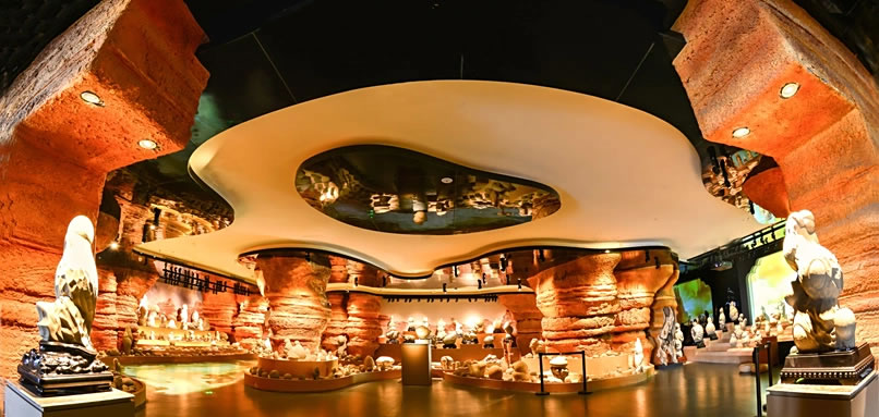 • 室內(nèi)展館:藏有吉尼斯紀(jì)錄奇石、巨型夜明珠,互動(dòng)投影展適合親子家庭,雨天可深度游覽。