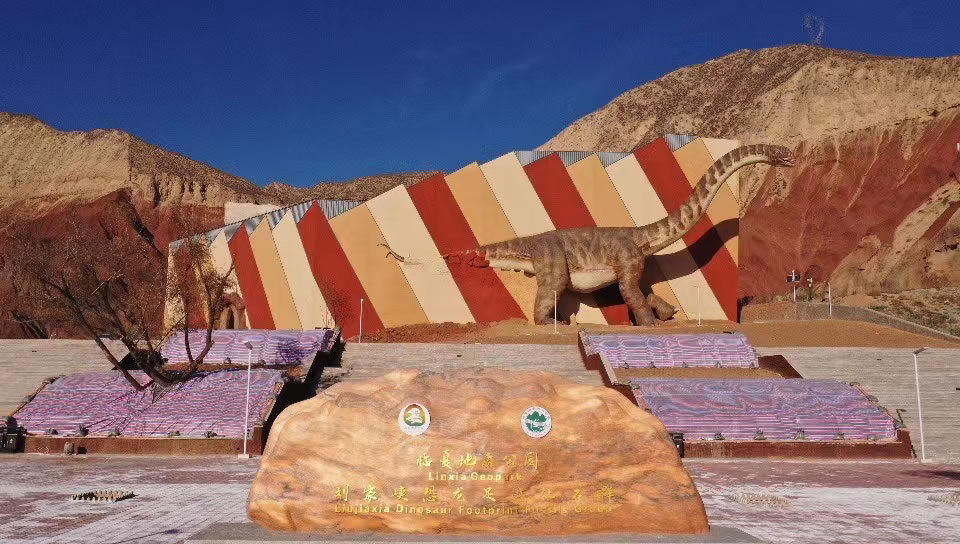 • 核心特色:以白堊紀(jì)恐龍足印群為核心,揭露面積2800平方米,含11類150組1831個(gè)足跡,最大蜥腳類足印長(zhǎng)150厘米、寬120厘米,步幅375厘米,創(chuàng)世界之最。配套恐龍臥跡、尾部拖痕、糞跡化石及蘭州龍、劉家峽黃河巨龍等骨骼化石,地質(zhì)博物館、5D影院、游步道等設(shè)施完善,兼具科研、科普與旅游價(jià)值。