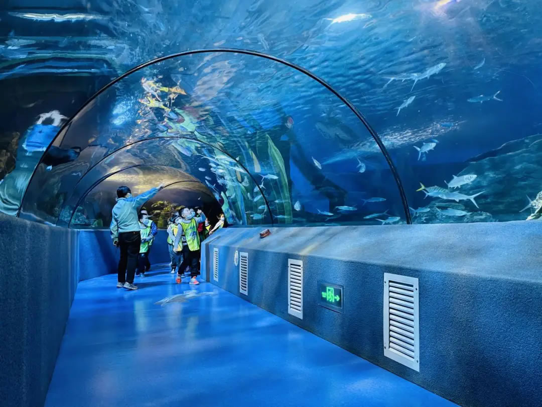 • 家庭親子路線:萌寵區(qū)互動(dòng)(小爪水獺、狐獴)→兒童游樂區(qū)→夜宿海洋館(6-14歲專屬,枕著魚群入眠)。