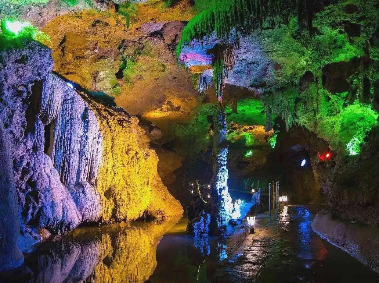 • 核心特色:四層溶洞體系、全長(zhǎng)6公里的地下長(zhǎng)河(明河1.5公里+暗河4.5公里)、恒溫18-19℃的洞穴環(huán)境、高空速滑(中國(guó)第一,落差100米)、卡丁車場(chǎng)、土風(fēng)舞表演及篝火晚會(huì),融合探險(xiǎn)、休閑、文化體驗(yàn)于一體。