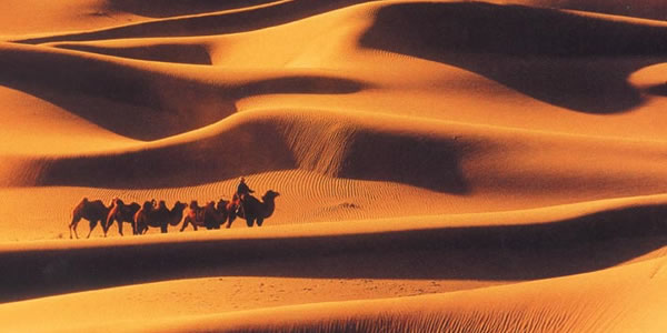 恩格貝,蒙古語(yǔ),意為平安、吉祥。地處庫(kù)布齊沙漠中段。歷史上曾綠草如茵,牲畜成群,召?gòu)R香火繚繞,是蒙古人民世代生息的地方。人類(lèi)掠奪性的開(kāi)墾、過(guò)牧,加上戰(zhàn)爭(zhēng)因素,作用于此地脆弱的生態(tài)環(huán)境,這里逐漸地被夷為沙海。土地資源喪失,人民被迫遷徙他鄉(xiāng)。