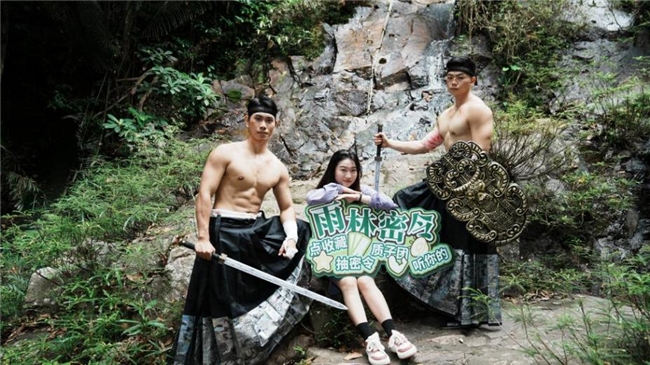 呀諾達(dá)的奇幻旅程,在踏進(jìn)呀諾達(dá)大門(mén)便已開(kāi)啟:身著專(zhuān)屬主題服飾的NPC游走在景區(qū)各處,超帥質(zhì)子團(tuán)和絕美祥ray團(tuán)為游客們獻(xiàn)上了一場(chǎng)又一場(chǎng)精彩的舞蹈演出,讓你仿佛誤入封神世界。絕美祥ray女團(tuán)陪你打卡雨林秘境,質(zhì)子團(tuán)陪你在踏瀑戲水區(qū)快樂(lè)戲水,還可以參與互動(dòng)和質(zhì)子團(tuán)成員擁抱、合影留念,沉浸式的玩法和有趣的互動(dòng)讓現(xiàn)場(chǎng)歡笑聲不斷。